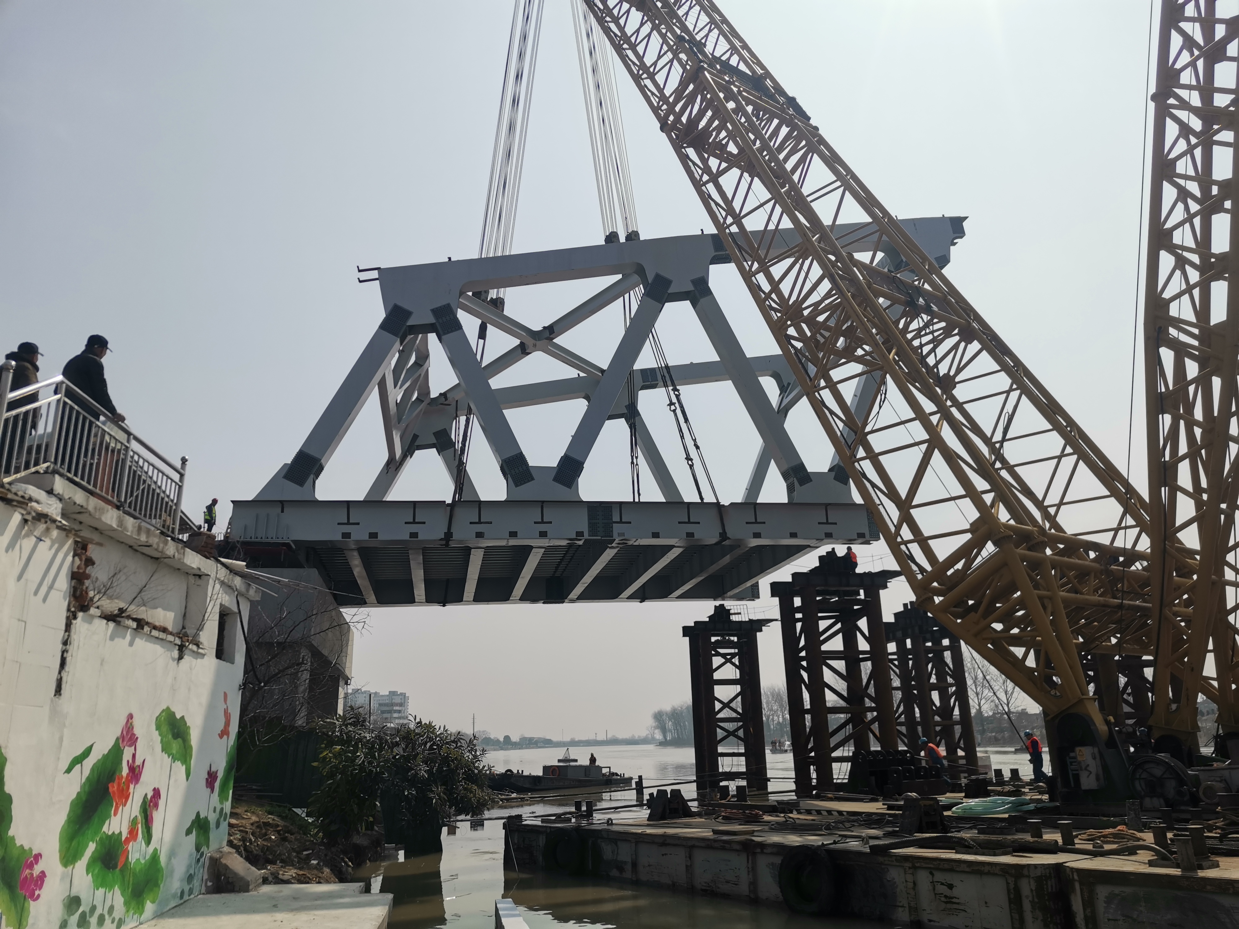 首節(jié)鋼桁梁的成功架設(shè),為寶應(yīng)運河大橋改建工程項目施工按下“快進鍵”。“下階段將全面推進鋼桁梁吊裝作業(yè),力爭3月8日實現(xiàn)合龍,為橋面系施工打開作業(yè)面。”江蘇交工項目負責(zé)人說道,“我們將繼續(xù)發(fā)揚鐵軍精神,重安全,抓質(zhì)量,講效率,精益求精,為如期實現(xiàn)通車目標奮勇前行。”
