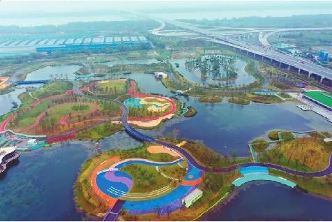 新化濕地公園項(xiàng)目結(jié)合城市規(guī)劃和片區(qū)水環(huán)境體系建設(shè),將貯渣場(chǎng)進(jìn)行綜合改造,因地制宜,循環(huán)利用,建成了一個(gè)集灰渣生態(tài)封存、污水廠尾水凈化利用、休閑健身、親子游園等為一體的多功能市民游樂(lè)公園。湖內(nèi)生態(tài)系統(tǒng)作為一個(gè)巨大的 “水質(zhì)凈化器”,能夠?qū)虮蔽鬯幚韽S處理后的達(dá)標(biāo)尾水進(jìn)行二次凈化處理,日凈水量近10萬(wàn)噸。經(jīng)過(guò)凈化的水資源通過(guò)濕地系統(tǒng),輸送至多條河道,能夠幫助河道進(jìn)行補(bǔ)水、引流,從而改善區(qū)域河道水生態(tài)環(huán)境,逐步提高水體自我修復(fù)能力,實(shí)現(xiàn)片區(qū)水生態(tài)環(huán)境的良性循環(huán)。