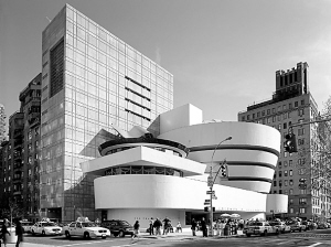作為現代主義建筑風格的旗手,查爾斯·格瓦德梅還運用復雜的幾何形設計建造出許多令人印象深刻甚至動輒引起爭議的公共建筑。他注重建筑與周圍環境的協調,很多作品都能夠很好地與城市肌理相融合,其中包括紐約國際攝影中心、阿斯托里亞移動影像博物館以及哈佛大學藝術博物館的擴建項目等等。最引起爭議的設計是他在1992年完成的紐約古根海姆現代藝術博物館的加建部分。這個博物館原本是弗蘭克·賴特設計建造的,賴特的古根海姆也曾一度引來爭議,但當人們終于開始看慣這一創意,并將螺旋結構的古根海姆奉為經典,格瓦德梅卻似乎無意于向賴特頗具風格的怪誕螺旋妥協。他采用標準而簡單的現代主義形式,在螺旋旁邊造了一棟方方正正的大樓。現代主義形式的兼容,使這座對比強烈又具有和諧韻味的建筑最終為世人所接納。