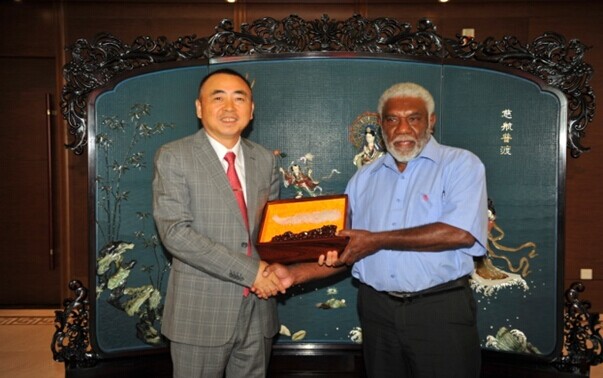 8月15日上午,正在中國南京出席第二屆青奧會開幕式的瓦努阿圖共和國總理喬·納圖曼在瓦外交部長薩托·基爾曼、瓦駐中國大使莫利薩夫婦和中國駐瓦大使謝波華夫婦等陪同下,率領政府代表團一行10余人來集團公司考察訪問。陳正華董事長熱情接待了代表團一行。